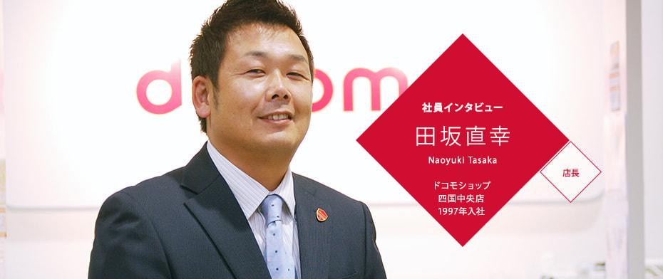 四国中央店の店長としては、ドコモショップ四国中央店という名前が全国に轟くような実績を残したいと思っています。そのためにはまず、四国で一番ですね。そこを目指して頑張っています。